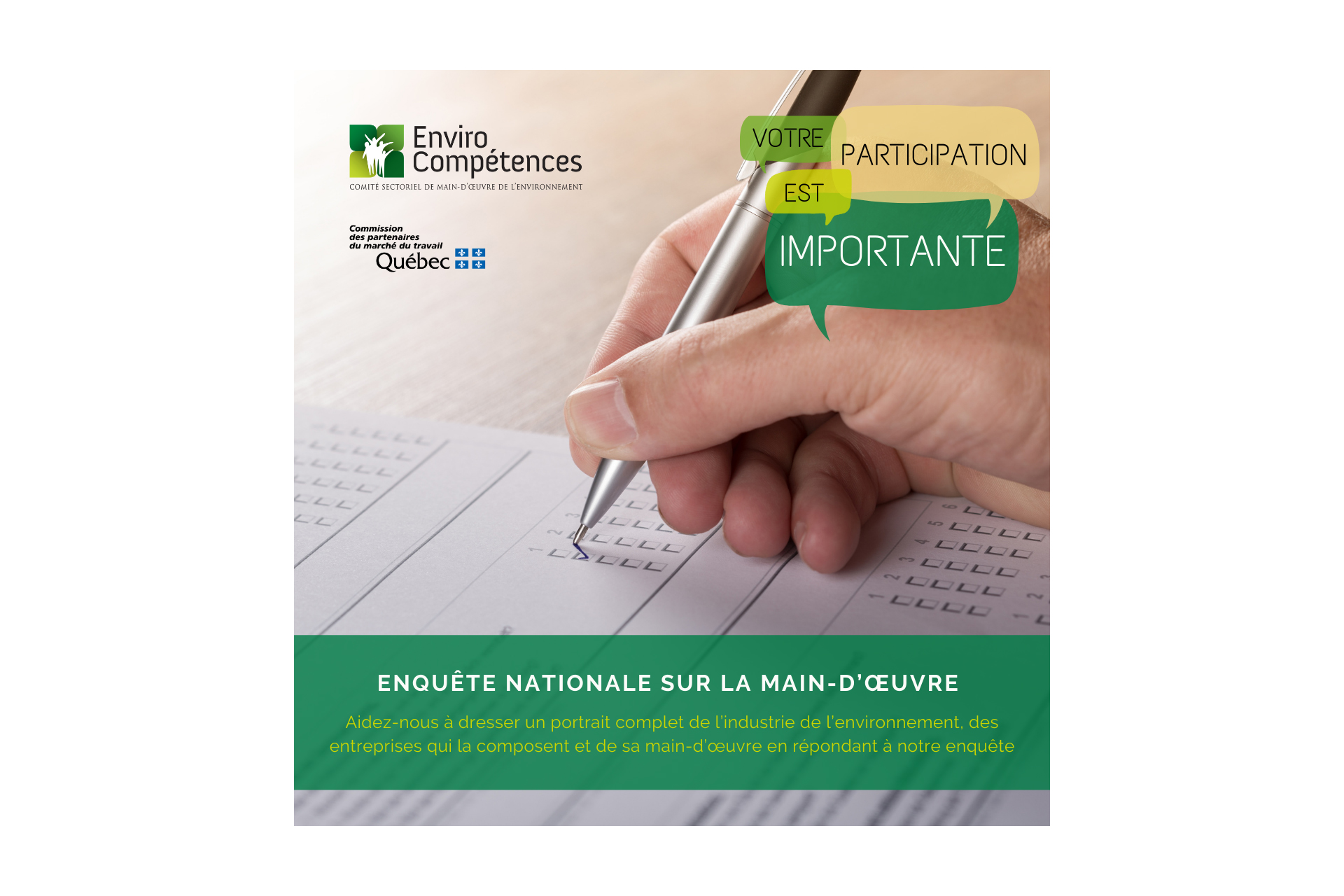 Consultations EnviroCompétences lance son enquête nationale sur la main-d’œuvre (Terminée) Lire l'article